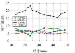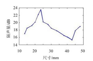 圖9 實測隔聲腔尺寸與隔聲量之間的特性曲線 ??下載原圖